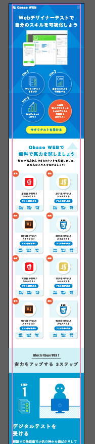 ブラウザで表示を見てみると、.top_imgboxの画像ははみ出していますね。 .top_stepboxに入れたSVGは表示されていません。olの数字も出ています。