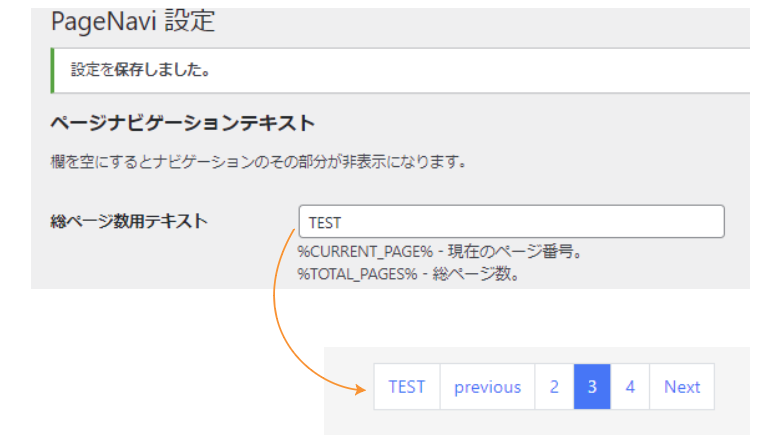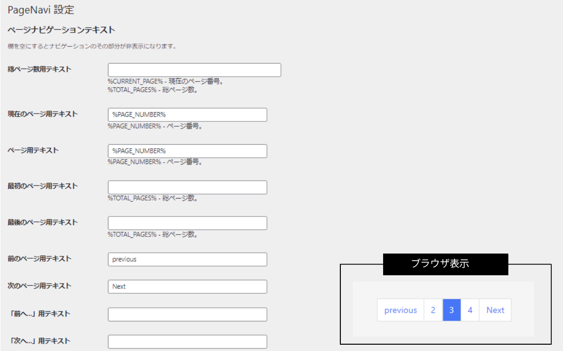この画面で<?php wp_pagenavi(); ?>で出力する項目をカスタマイズすることが出来ます。