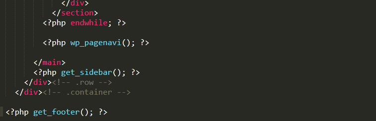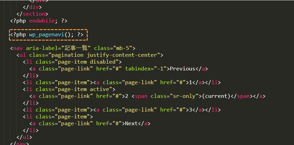index.phpで、記事一覧の下にあるページネーションをWordPressと連動させます。