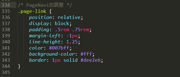 このような流れで、Bootstrapのページネーションと見合わせながらPageNaviのページネーションにスタイルを付けていきます。マウスを重ねた時の色の変化などもありますね。