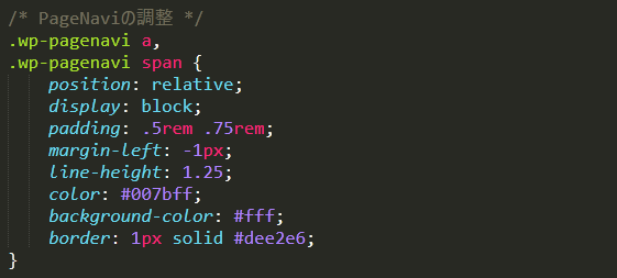 このスタイルがPageNaviが出力しているコードに反映されるように、セレクタを変更します。何をセレクタにするのかも検証ツールなどを使って調べてみましょう。